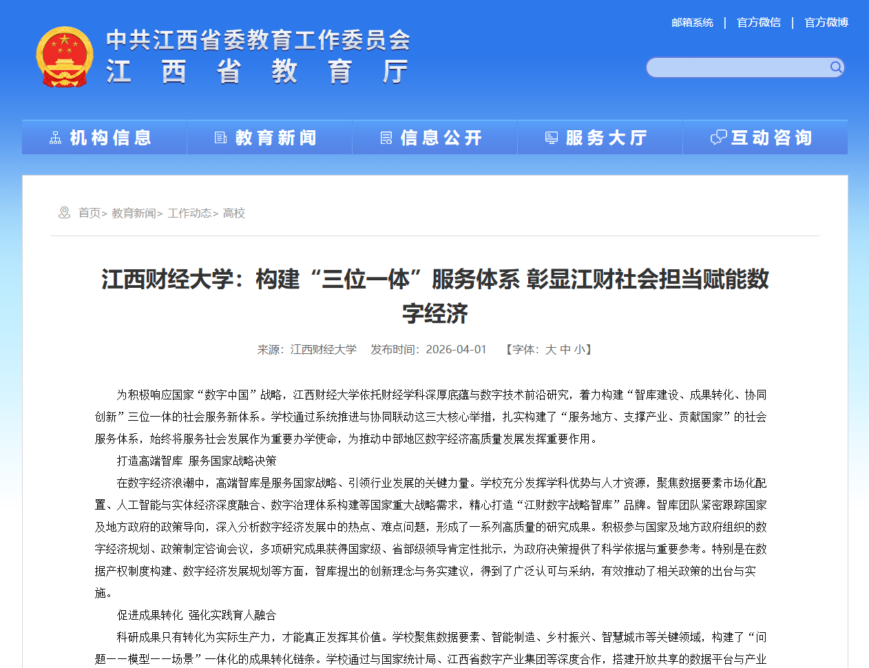 近日,教育部网站“战线联播”栏目以“江西财经大学对接...