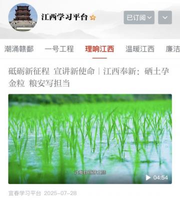 7月28日,我校驻村工作队王涛同志以全县基层理论微宣讲大赛第一名的优异成绩,代表奉新县参加江西省“砥砺新征程宣讲新使命”主题宣讲活动,宣讲作品《硒土孕金粒,粮安写担当》登上“学习强国”平台,向全国观众宣传“宜春大米”。
