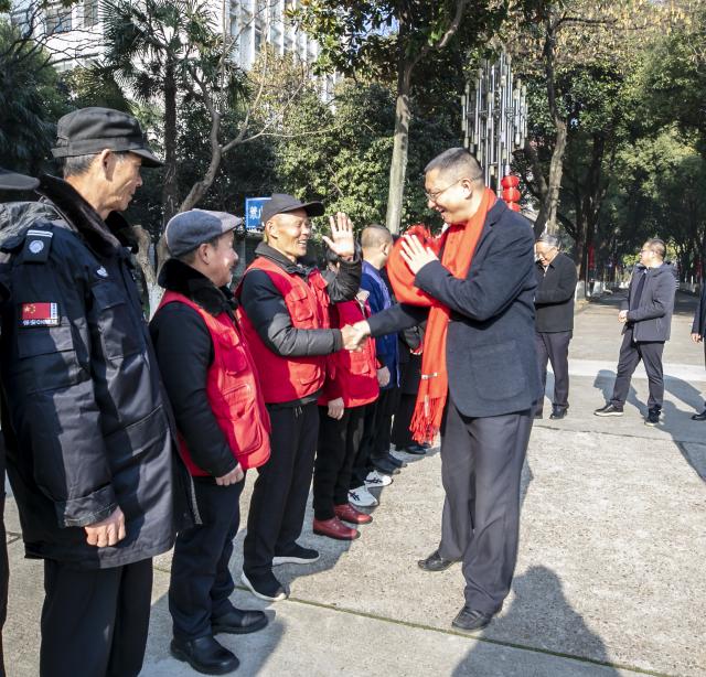 校领导一行走访了蛟桥园、麦庐园、枫林园和青山园,看望慰问了校医院、后勤与资产管理处、保卫处、继续教育学院等单位的工作人员。每到一处,校领导都与坚守岗位的工作人员亲切交谈,详细询问了假期值班安排、设备运行、应急处置、安全保卫的落实情况以及他们的工作生活状况。校领导对大家在春节期间舍小家、为大家,无私奉献的精神表示敬意,并对他们保障学校假期安全稳定和正常运转表示衷心感谢和亲切慰问。