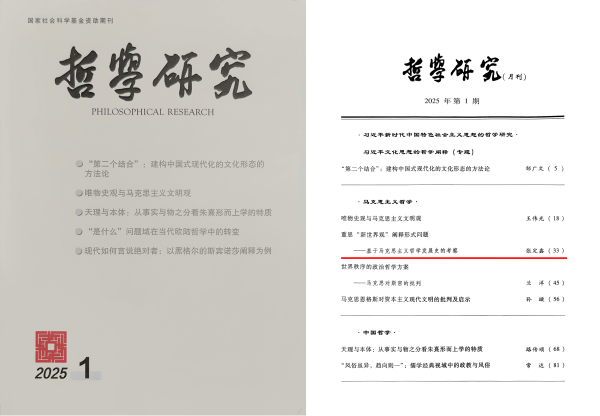 近日,马克思主义学院博士生导师张定鑫教授的论文研究成果《重思“新世界观”阐释形式问题——基于马克思主义哲学发展史的考察》发表于权威期刊《哲学研究》2025年第1期。