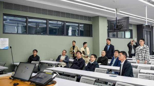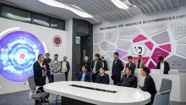 会后,谢花林一行实地参观了深圳大学丽湖校区四方楼智慧教室、科研楼等重点场所。深圳大学相关负责人现场演示了智慧教室课程共享功能,展示多校区同步实时授课的教学模式。