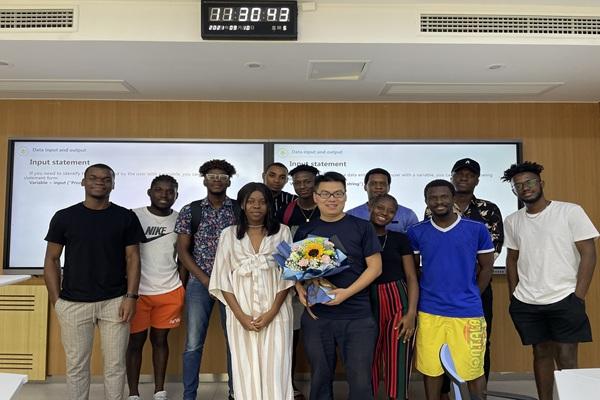 凭借流利的英语口语,赖新峰长期以来担任留学生的专业任课教师。除了讲授专业知识外,如何讲好中国故事、传播中国文化也成了赖新峰身上的一份责任。利用课余时间,经常组织留学生开展汉语大赛的训练,鼓励他们参加各类比赛。赤道几内亚籍留学生卡门(CARMEN),是学院2019级的留学生,凭借出色的口语获得了2021年第九届江西省外国留学生汉语大赛的第一名,同年又凭借《致橡树》荣获江西省第三届中华经典诵写讲“诵读中国”大赛的三等奖。