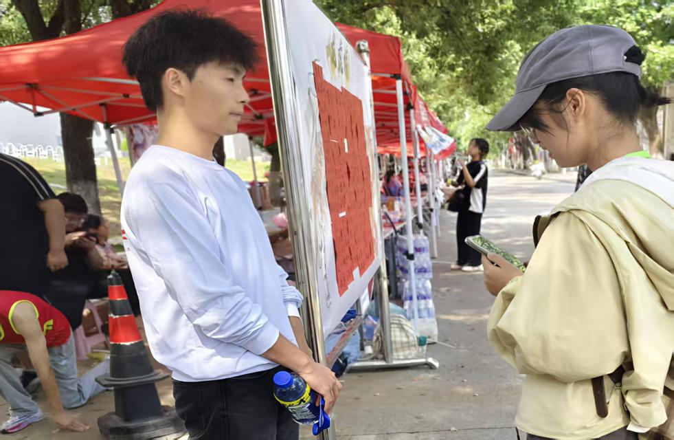 旗帜飘飘,彰显着各个学院不同的风采。龙虎榜上的喜报,承载着运动员和各个学院最殷切的期盼在采访记录组的汪政宇同学时他提到:“最重要的是(喜报)是不能修改的。不能出现什么纰漏,包括纸张的大小、宽度都是需要考量的对象。”喜报上记录的不仅仅是一个名次,更是运动员们努力与汗水的见证。他坚定的话语,庄重的神态,都向我们昭示着他的一丝不苟。细致认真,在此刻有了具象化的表述。