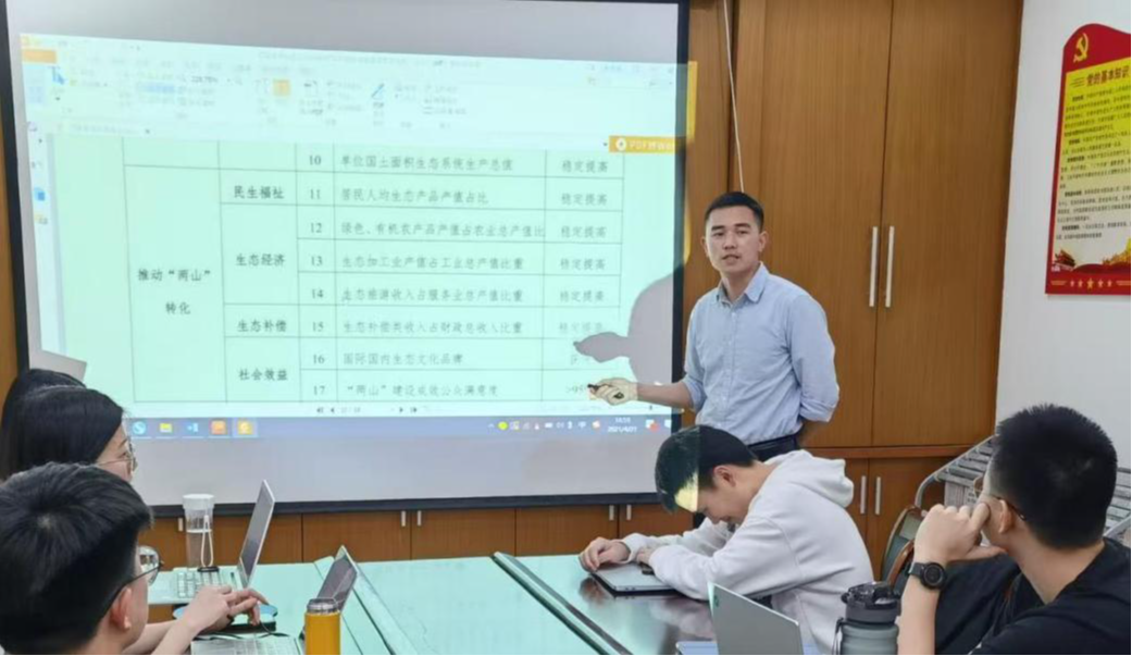 在邬老师的课堂上,传统的讲授被大量情境化教学取代。在一次“两山”实践创新基地课程教学中,邬老师采用“启发教学、教师讲解、案例示范、项目模拟、小组讨论、代表发言”六环教学法,带领学生梳理我国生态环境治理政策演变历史、系统了解相关职能部门“两山”实践工作,理论分析、案例论证“两山”论断科学性,沉浸式体验、实验模拟和真实参与“两山”基地创建“项目招标-项目准备-项目洽谈-项目调研-项目实施-项目结题”等各阶段工作,让学生熟悉、掌握“两山”方案编制的标准化流程,提升学生产学研能力。
